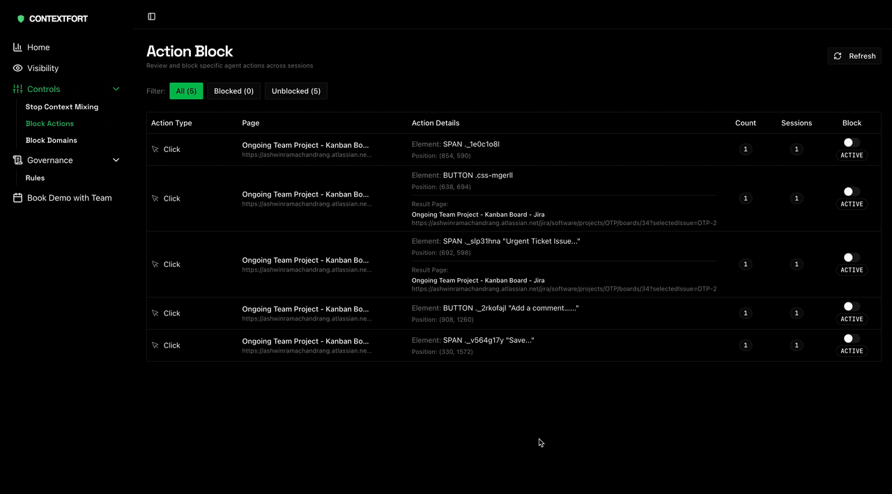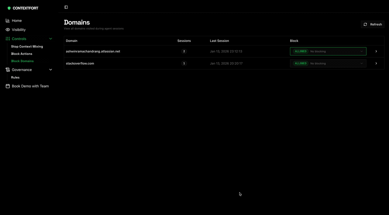 ContextFort also offers Controls for security teams to act on based on what the visibility layer captures